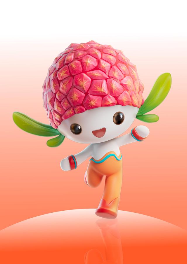 吉祥物“荔荔”形象根植荔枝文化,结合荔枝红和象征“好心茂名”的沉稳深红色调元素,以拟人化的设计手法进行卡通形象塑造,其头部由一颗饱满的荔枝构成,耳朵是灵动的荔枝树叶造型,整体设计形态生动,线条流畅,形神兼备,充分体现茂名荔枝之乡的文化内涵。