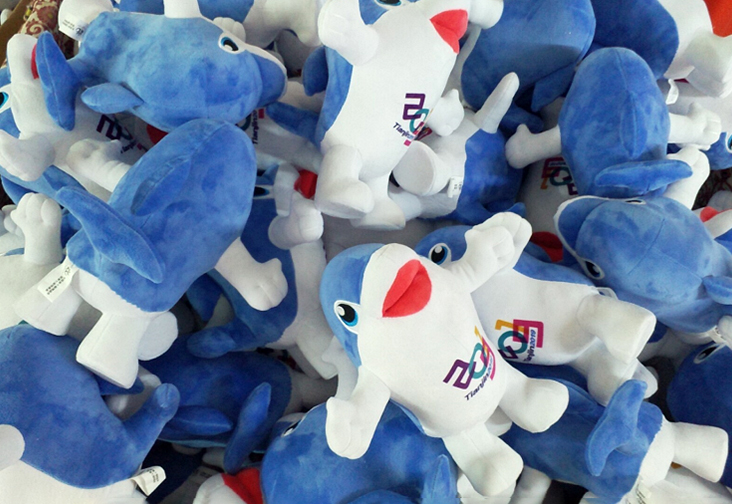 开场大戏《绽放的笑脸》演绎了无数快乐的海豚在涌动的海浪上腾跃,斑斓的色彩让蔚蓝色的海洋仿佛涌动着梦境一样的光芒。值得一提的是,集善良、博爱、智慧、科技、灵动、可爱于一身的小海豚正是本届残运会的吉祥物-新新,而此吉祥物毛绒玩具及其衍生品也正是由东莞我扬为本届运动会定制生产的。本届运动会新新吉祥物(海豚) 形象因可爱的造型及完美工艺的结合,使得市场在前期预售阶段就掀起销售热潮。我扬公司是继为2017年天津全运会定制吉祥物-津娃后再次成为本届天津残奥会暨特奥会的特许生产商,为确保此次赛事吉祥物能顺利完成,我扬公司从7月就开始安排生产,每个环节都由负责此项目的相关人员全程跟进,在8月上旬保质保量完成了本届运动会吉祥物的定制工作,并得到了组委会的高度赞赏。