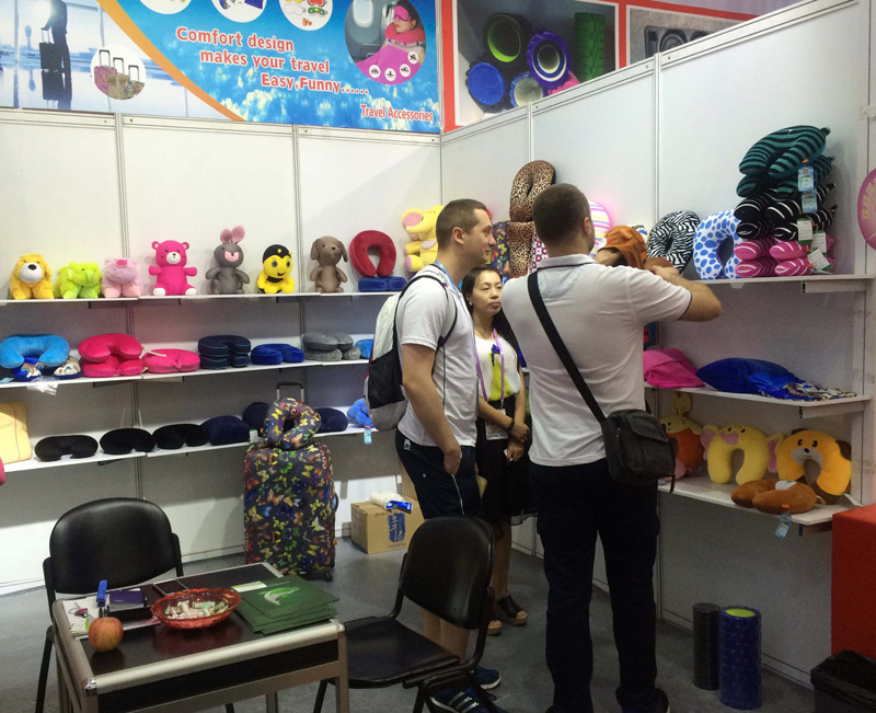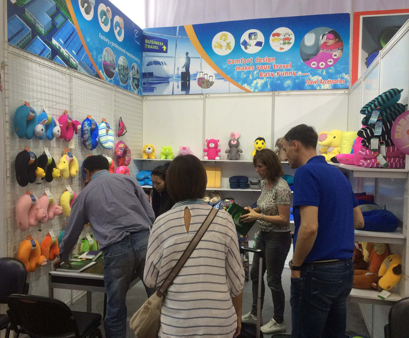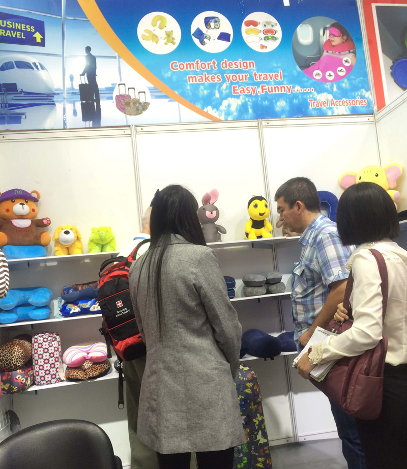 On this show, different filling material pillow was displayed, we fill the travel pillow with microbeads ,polyester fiber,and inflatable pillow. One customer from France said I can buy all the three kinds of pillow from you, they bought them from two suppliers before.